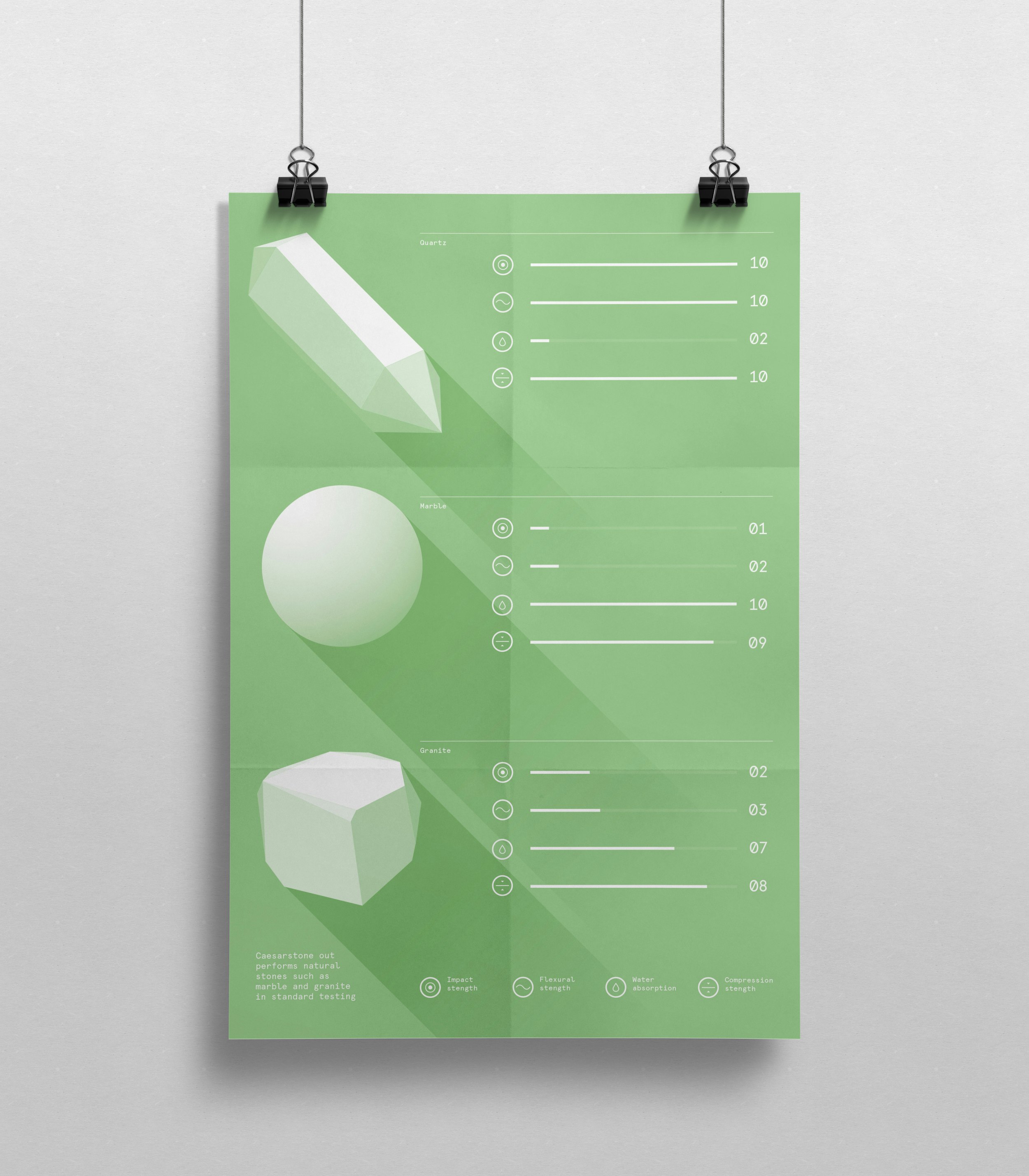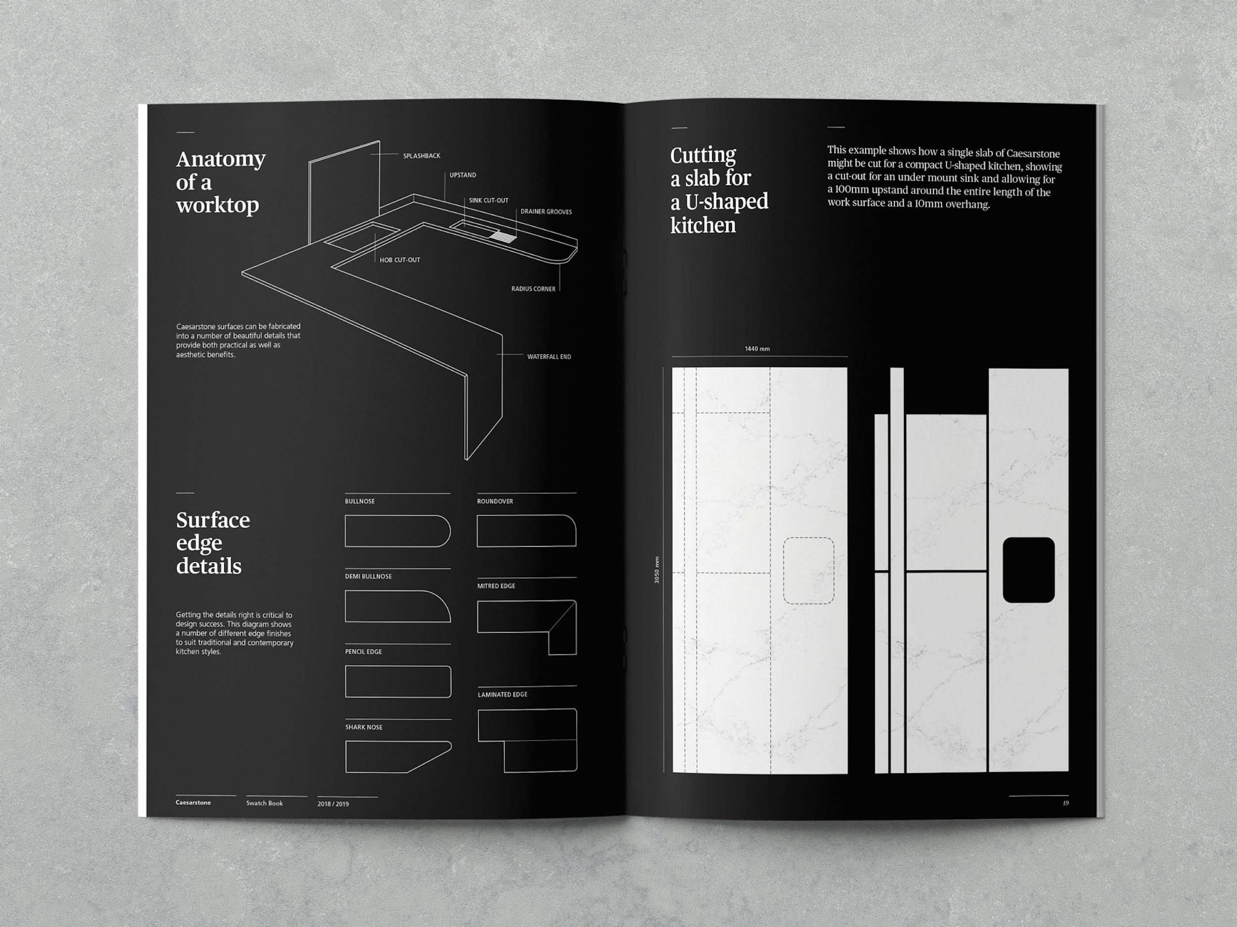 Being in the stone business presents Caesarstone with very unusual marketing challenges, especially when it comes to communicating the look and feel of very heavy materials designed with tremendous attention to detail. Caesarstone products are premium in their sector, and the artistic and manufacturing qualities need to be conveyed through print in ways that communicates the product qualities. Only the finest design and print techniques can achieve this.