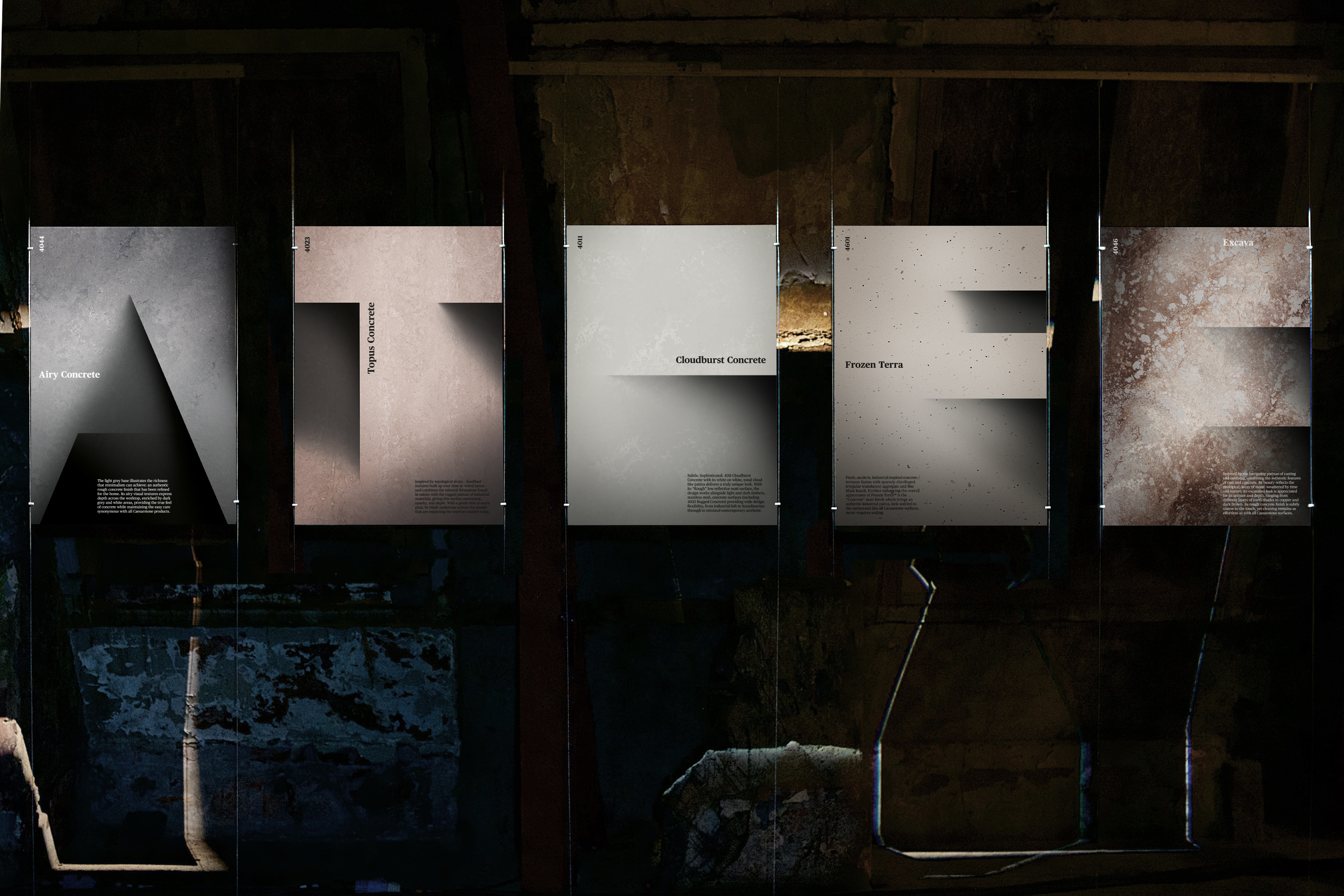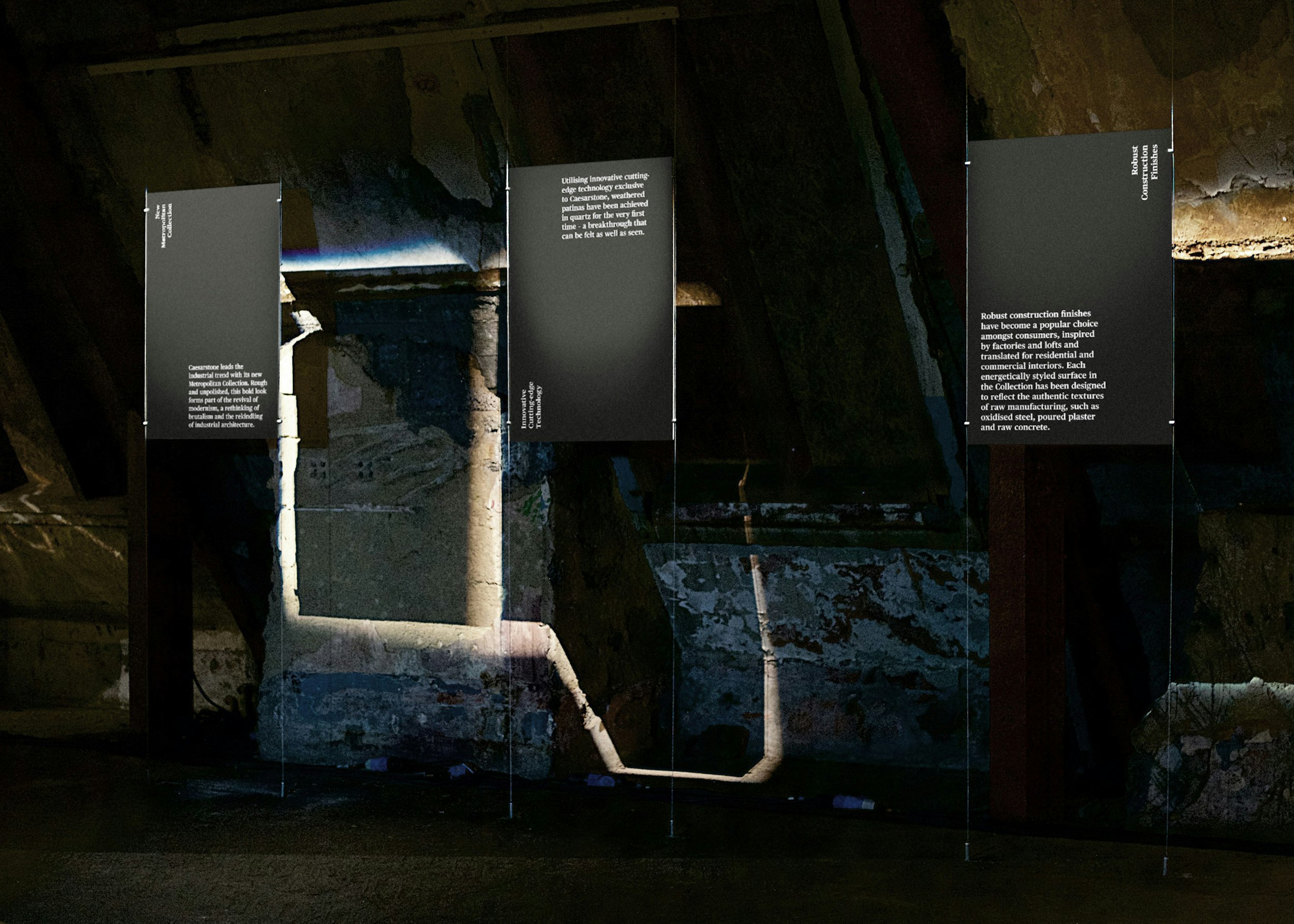 Caesarstone's exhibitions need to portray the focused effort and attention to design detail that goes into all their industry-leading products. Nous has designed and produced a variety of collateral for different exhibition environments designed to portray the depth of artistry and production consideration that goes into all Caesarstone ranges.