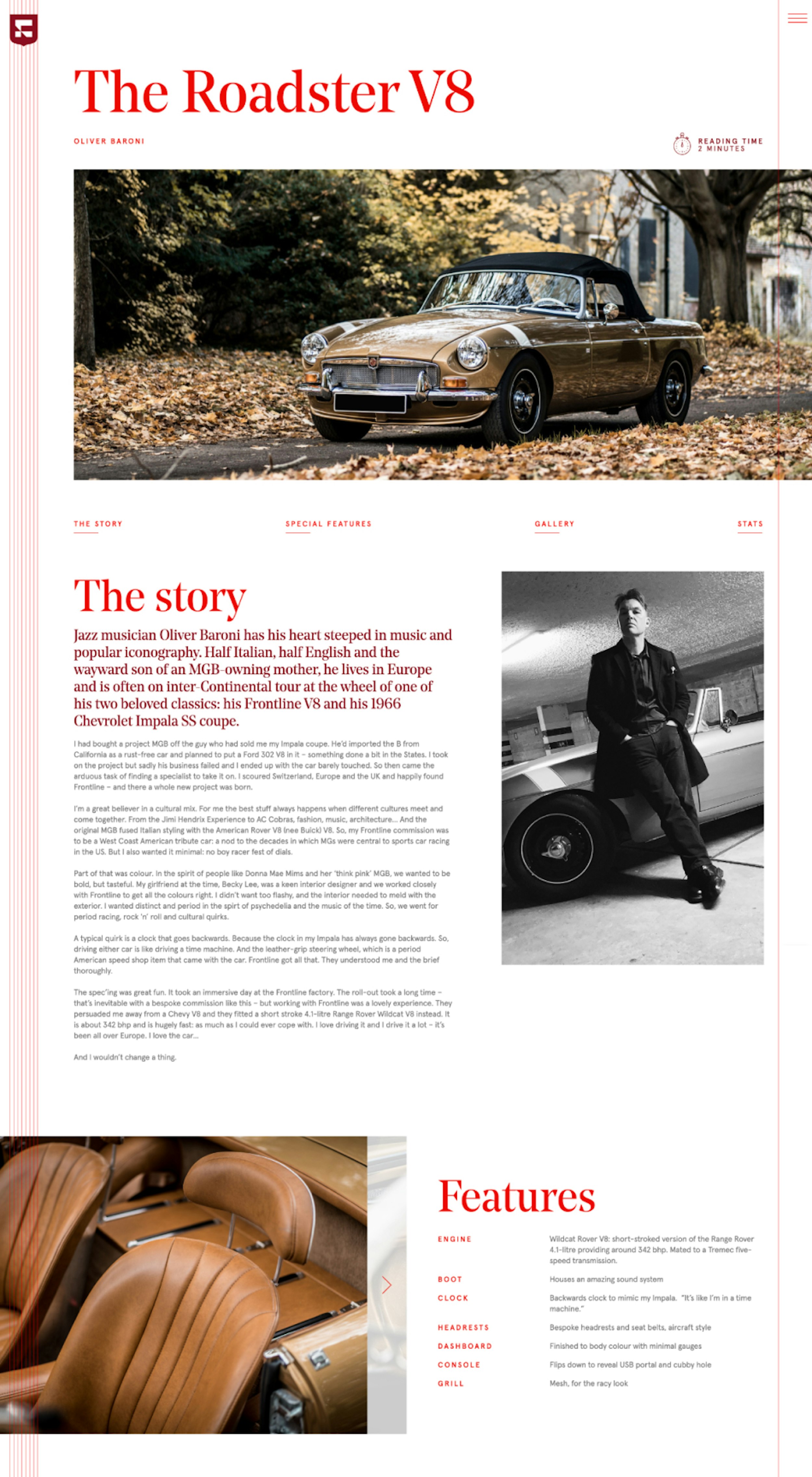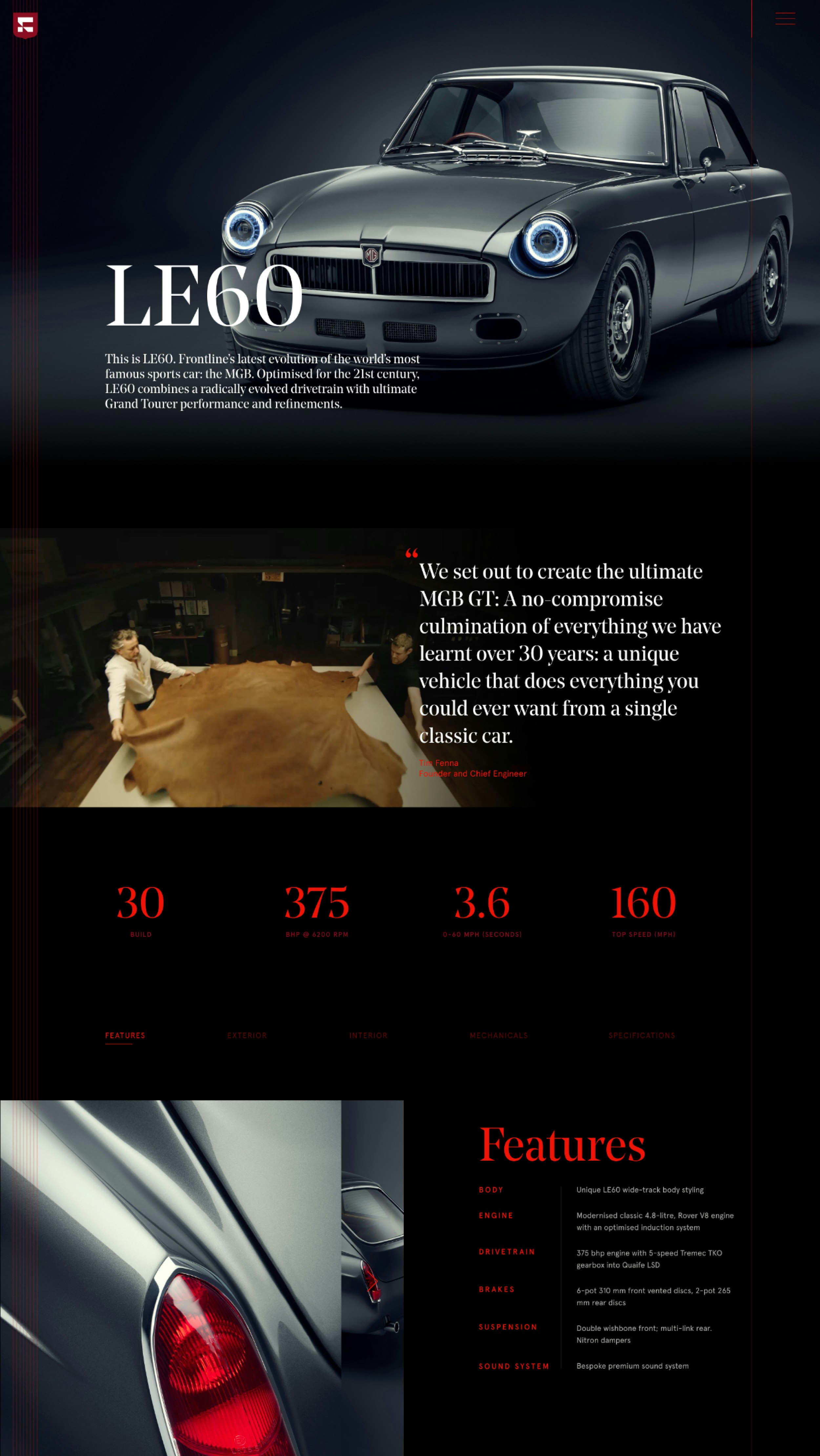 The finished site strikes a powerful balance between form and function. It’s a digital flagship for the brand that is informative without being overwhelming. No opportunity is missed to spark desire and immerse the user in the thrill of owning a Frontline car.