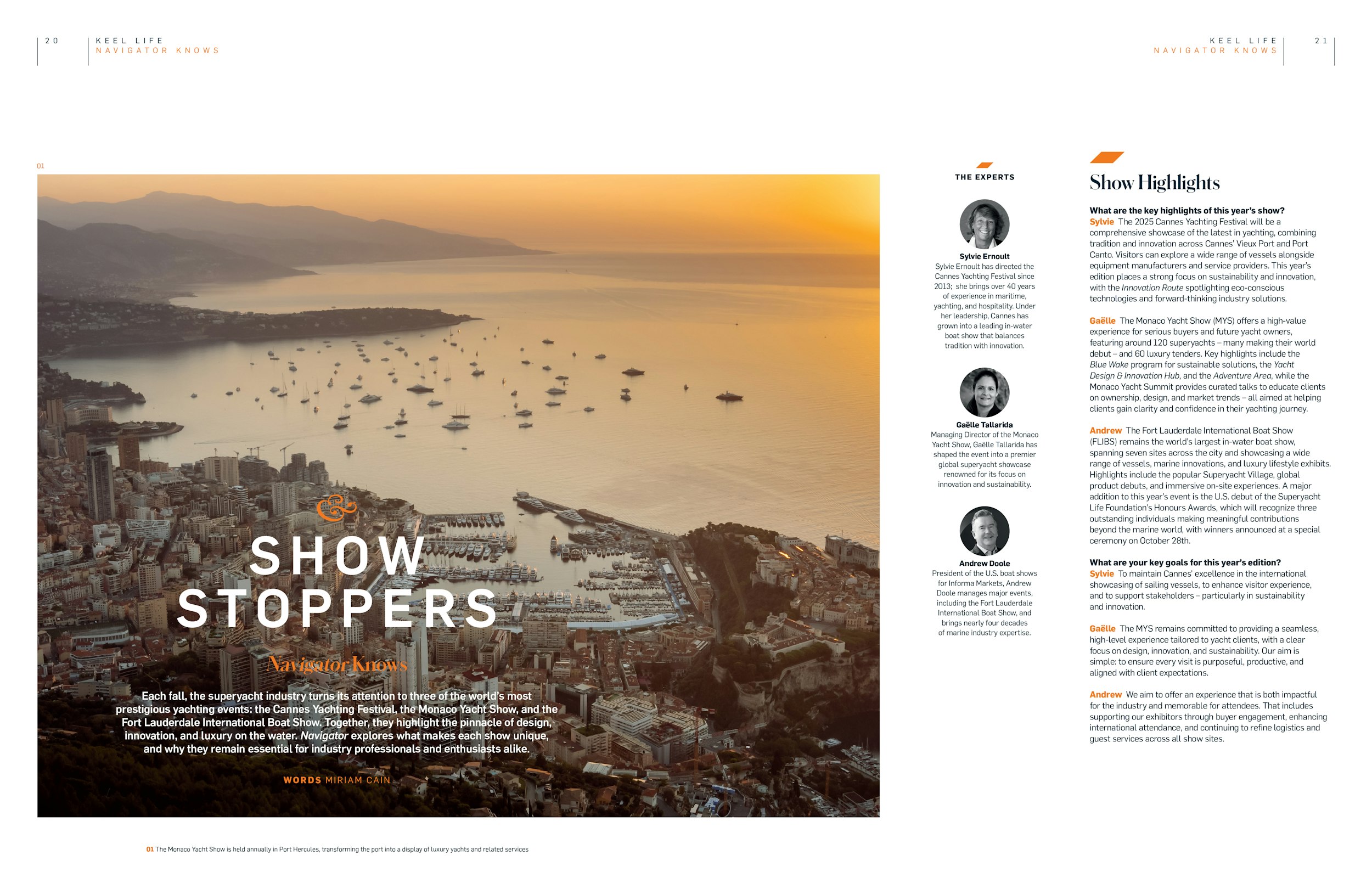 Each edition features a commissioned illustrated cover and a carefully balanced mix of editorial content, including destination features, cultural and sporting events, interviews, and luxury products. The magazine also includes updated listings for sales and charter, presented with clarity and visual polish to appeal to discerning clients.
